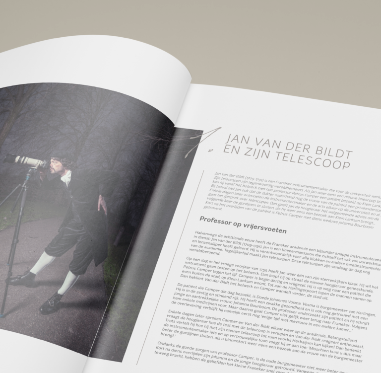 Historicus Josse Pietersma heeft 11 Academische verhalen geschreven die het roemruchte verleden van Franeker een gezicht geven. Beeldend kunstenaar Tryntsje Nauta en fotograaf Jeroen Adema hebben hierbij vervolgens een beeld gemaakt. Wij hebben deze 11 verhalen vormgegeven in een boekwerkje als geschenk aan alle medewerkers van het wetenschapsymposium voor kinderen: Expeditie Next.